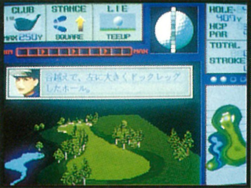 ドライバーからパターまで、コースラウンドの雰囲気を再現! ゴルフコースの傾斜や起伏を、三角形の計測数値でコンピューター処理するポリゴン手法で再現。打ち下ろし、打ち上げ、つま先上がり、つま先下がりなど、実際のゴルフコース並みの状況設定を実現。