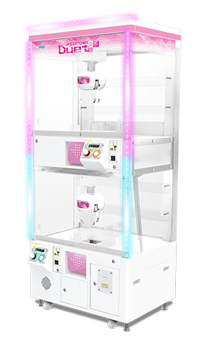 お馴染みのシンプルな操作性はそのままに、景品を3本のアームでガッチリつかみ上げることが可能に。ブースが上下2段になった新型で、目線の低いお子様から大人まで遊びやすいつくりに進化。 上下2段の特性を生かし、別々のカラーリングにイルミネーションを設定できるため、より華やかなフルカラーLEDの演出も楽しめる。