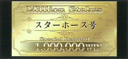 - スターホース3(スタホ3)最新版のシーズン7。 「アマゾン競馬場」で行われる「ミリオンステークス」が新規追加。スタホ2で好評だったレンタル馬主が「セレクトホース」として復活。 10倍サイド馬券+αの枚数でBETすることで、ラリーサイド確定に加え、殿堂馬のプレミアカップ出場回数を回復可能な新アイテム「プレミア出場回数回復券」が獲得できる新馬券「プレミアサイド」も導入された。