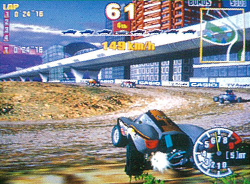 連続したハイジャンプや、敵軍とガンガンぶつけ合う迫力を楽しむことができるオフロードレースゲーム。 ギャップやコーナーなどの路面、接触時のマシン状況にリンクしたステアリング感覚が再現されている。プレイヤーマシンは全5タイプから選択可能で、コースは3種類。最大で4人までの通信対戦が可能。