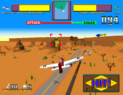 フルポリゴンの対戦型ドッグファイトシミュレーション。 ゼロ戦からハリアーまで、新旧8機の戦闘機による白熱のドッグファイトが楽しめる。自動視点切り替えのオートマチックビューを含めた4通りの視点を選べる。 ターン制のドッグファイトとエキスパートの2モードがある。