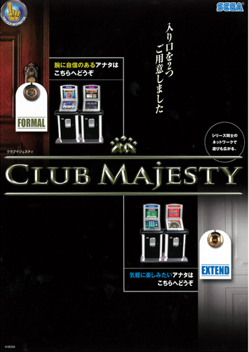 - 新たなシングルメダル機「クラブ マジェスティ」シリーズ。メインモニターと上部モニターでの2画面出力や、タッチパネルによる快適操作、アームレスト振動搭載など新たなエンターテイメントを演出。 「クラブ マジェスティ」シリーズであれば異なるタイトルでも、店内LAN接続により14台まで接続が可能で、プレイヤー全員参加のリンクゲームを楽しむことができる。 ・ヘビーユーザー向け「FORMAL」 「アトラクティブデッキポーカー」 配り直しのないスタンダードなスタッドポーカーに、3つのデッキで楽しめるフリープレイ要素を追加。5枚のカードをめくり、役がそろっていれば配当ゲット! ワイルドカー ドが出て、カード上のコインがSPINに変化すると、カードの種類が限定された3種のフリープレイへ突入!役が揃う確率も倍増。 「コズミックチャレンジ」 エキサイティングな演出を随所にちりばめた、宇宙的なイメージの8ラインビデオスロット。1BETで全てのラインが有効になるリールスロット。センターにスペシャルシンボルが止まったら、すごろくゲームなどそれぞれのシンボルに対応した様々なボーナスゲームに突入!! ・ビギナー向け「EXTEND」 「クラウドナイン」 上下左右9つの場所にカードを置いていく戦略性の高い新感覚のハイ&ローゲーム。9つの場所に、トランプの強弱に沿ったルールでカードを1枚ずつ置 いていくハイ&ローゲーム。カードを全て配置できればゲームクリア!連続クリア回数に従い配当はどんどん増えていく。 「ホイールマニアックス」 簡単ルールでスピーディな進行が熱い、超爽快なホイール型抽選ゲーム。ボタンを押すと一番外側の1stホイールが回転。GO!のマスに止まればさらに配当の高い2ndホイールに突入。そこでBONUSに止まれば高配当が期待できる3種のボーナスゲームへ発展。
