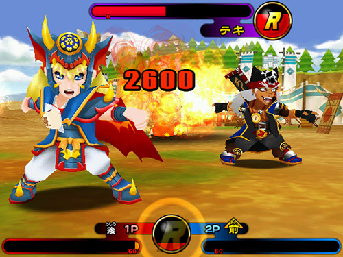 - 戦国時代の武将達を操り、天下統一を目指して「ゲッテンカバトル」で雌雄を決するカードゲーム。本作には「キャラカード」、「アイテムカード」、「武器カード」の3種類が用意されており、これらはすべて透明の(クリア)カードとなっている。 あらかじめ「キャラカード」に「アイテムカード」と「武器カード」を重ねて、バトルに使用する手札のデッキを作成。3枚のカードを重ねたままゲーム機に読み込ませてバトルを行なう。ゲッテンカバトルでは、画面に表示される手札の数字がつながるようにボタンを押し、攻撃時に「撃」ボタンを押す。これを何度か繰り返し、相手のゲージを「0」にすると勝利となる。バトルに勝利すると新たな相手とのバトルに進むことができ(最大3バトル)、敗北するとゲームオーバー。