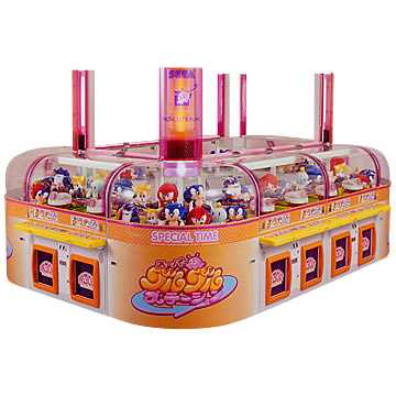 - 回転寿司を想起させるプレイフィールドがひと際目を引くクレーンゲーム。 UFOメカを操作し、ぐるぐると回っている景品を押し出して入手する。操作は3つのボタンを使用。まずコイン投入時に数字のルーレットがスタート。1ボタンで止めた数字がポイントとして貯まる。続いて欲しい景品に狙いを定め、2ボタンを押して高さを調節し、回転している欲しい景品が目の前に来たら、タイミングよく3ボタンを押す。見事押し出すことができれば景品を入手できる。 また、ルーレットで獲得したポイントが一定量貯まると、まるでブルトーザーのような、先端がT字型の「スペシャルアーム」が登場し、景品入手が容易になるチャンスも用意されている。なお、ゲーム機の中央にアテンダントが入るスペースがあり、コミュニケーションをしながらのプレイも楽しめる。