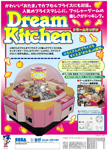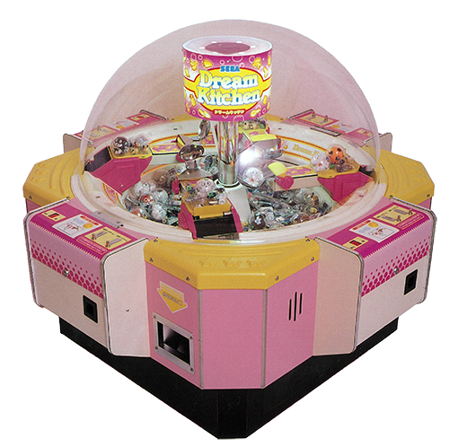 キッチンをテーマにしたクリアドームの中にカラフルでかわいい世界を演出。 すくい上げたプライズをアーム上に落としプッシャーで押し出す。たくさんのプライズをすくえる「おたま」を採用。4人用ながらコンパクトなボディ。