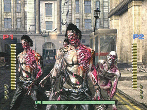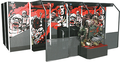 - 前後2画面100インチスクリーンを採用したアトラクション型筐体で登場!! ゾンビ達の、今までにないぬめり感や光の表現、蠢く影などを、最高レベルのグラフィック性能を誇る次世代基板「リンドバーグ」が実現した。 ゲームの進行に合わせてシートが回転!前後左右から襲いかかるゾンビ達と戦う、今までにない恐怖と臨場感を体感できる。トリガーを引くとサブマシンガン型ガンコントローラが小刻みに振動し、ゾンビ達を撃ち倒したときのプレイヤーの爽快感は格別。
