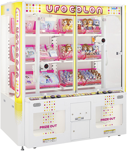 ゆらゆら揺れるギミック満載のUFOシリーズ登場!!常に「落ちそう!」「もう少し!」といったドキドキ感を体感! 「UFOメカ」(移動するアーム)の移動はレバー式で、制限時間内なら何度でも移動させて自分の好みの位置に設定することが可能。コントロールパネルの位置を低く設定しているので、小さなお子様にも楽しめる。