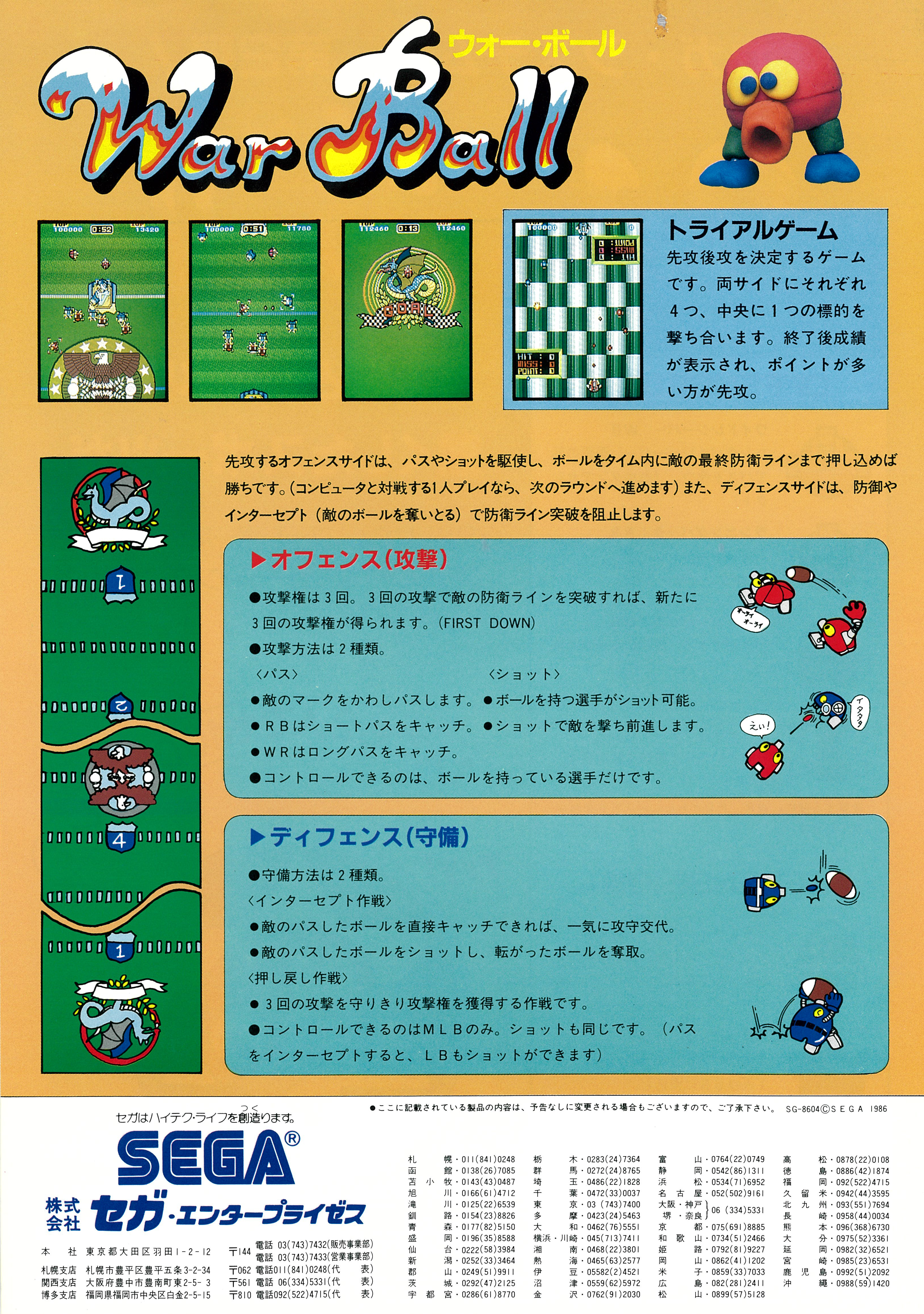 - ジャンル:SPT(アメフト)/プレイ人数:1~2人/基板:SYSTEM Ⅱ