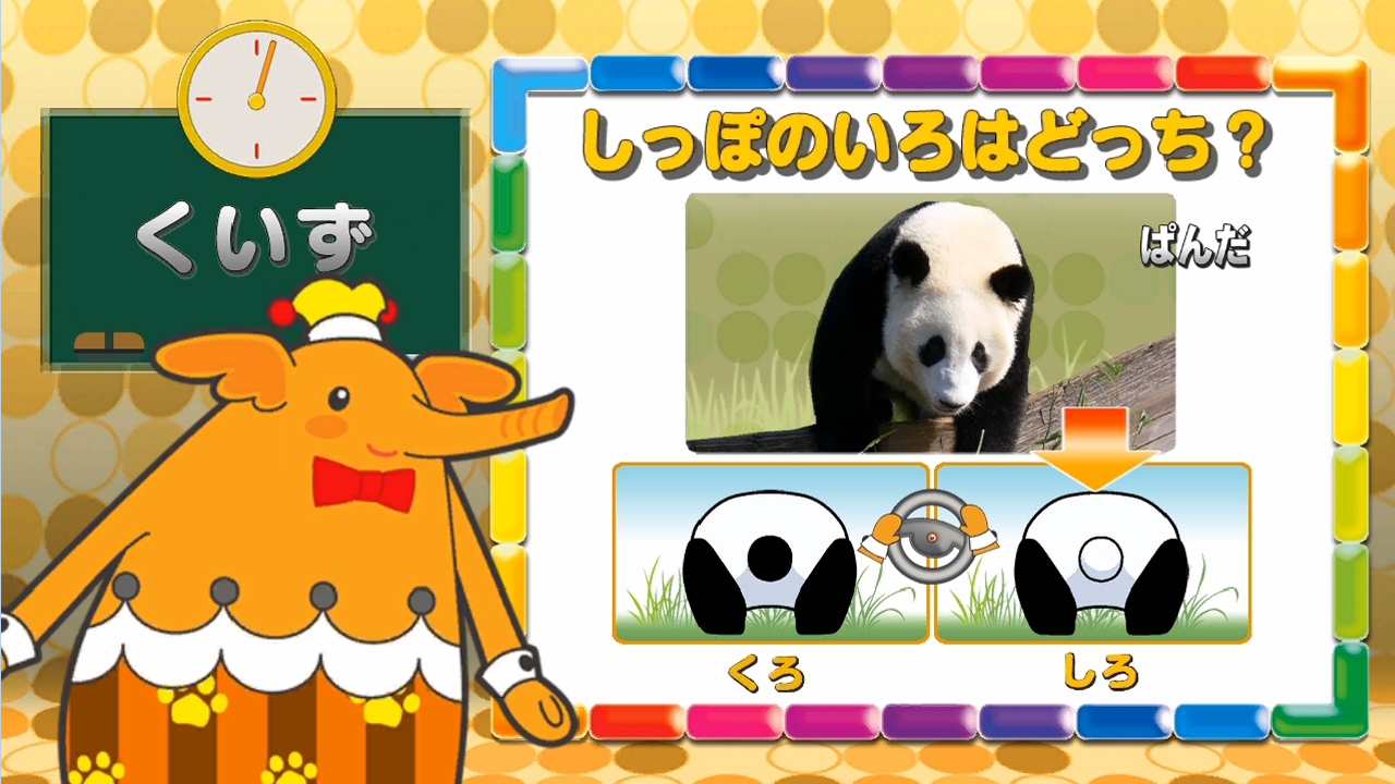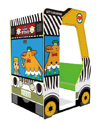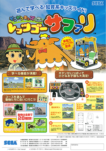 - 『そうぞうキッズレッツゴーバス』に続く「そうぞうキッズシリーズ」第二弾。 舞台はサファリパーク。自分でジープを運転して様々な実写映像の野生動物に会いに行き、遊びながら動物の名前や生態が自然に学べるキッズライドゲームとなっている。 他の車にぶつからないよう上手に運転するのも醍醐味。スピードが加速する「シフトレバー」を始め、「花火ボタン」「ワイパーボタン」「クラクションボタン」「ビューチェンジボタン」など、走行中思わず試したくなるおもしろい仕掛けボタンも多数あり、楽しく運転手気分を味わえる。