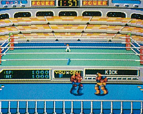 銀河特設リングで戦う、未来のロボットプロレスゲーム。 赤いランプが3個点滅するとド派手な空中殺法スカイハイをくり出すことができ、リングにヒビが入るという演出もあった。新旧取り混ぜたプロレス技や人間には不可能な技など、計40種類もの多彩な技をくり出すことができる。1試合3分で2人対戦プレイも可能。