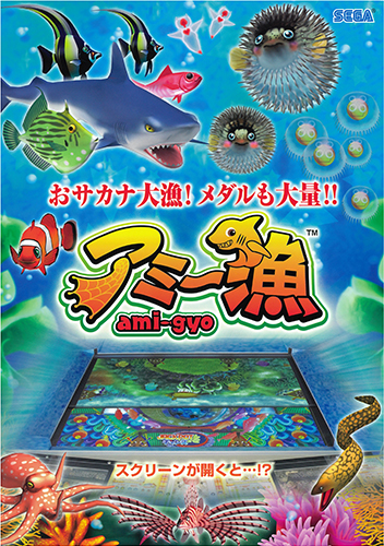 - 筐体中央にある70インチの大型水平スクリーン上に投影された、バラエティ豊かな魚たちを捕獲するメダルゲーム。 ダイヤル型のコントローラで狙いたい魚へ方向を定め、メダルを投入して網を投げる。投げた網に魚が当たると「漁獲量」を獲得できる。 大きい魚や群れで泳ぐ魚などを捕まえると、漁獲量を多く獲得できるコンボが発生し、100Kg貯めるごとに大漁スロットに挑戦できる。さらに高確率でパール獲得イベント「パールチャレンジ」に移行する。シャッフルを見抜きパールを10個集めると、さらに大量メダルを獲得できる「ジャックポットチャンス」にチャレンジ可能。ジャックポットチャンスでは、2重構造になっているスクリーンの1枚がスライドし、スクリーンの下から「アミー漁クルーン(アナログ抽選システム)」が出現する。クルーンとデジタル映像の融合が楽しい。また、ジャックポット中は他のプレイヤーにもチャンスが発生。龍宮城で泳ぎ回るタイを捕獲すると、ボーナスの玉手箱がもらえる。 突然現れる巨大魚を倒す「巨大魚山分けルーレット」、分裂が楽しい「メダルクラゲ」、ミッションをクリアするとメダルがもらえる「Vチャンス」など、同時プレイを楽しめるイベントも充実している。サテライト数は6つ。最大12人で楽しめる。