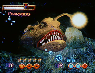 - 世界にまたがる七つの海と湖を舞台に、巨額の賞金がかかったモンスターフィッシュと闘うガンシューティング。 攻撃方法は連射可能な水中銃のみ。デラックス筐体ではVR反動システムを搭載、銃の反動がリアルに伝わる。巨大でグロテスクな海洋生物をうまく表現している。数々の怪魚が襲い来る迫力の映像は必見。全7ステージ。