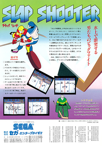 - 実戦的なプレイが楽しめるアイスホッケーゲーム。 ボディチェックでパックを奪い、パスボタンで相手をかわしながら、シュートボタンでゴールを狙っていく。ゲームは3ピリオドで争われ、各ピリオド終了時に負けているとゲームオーバー。ハーフタイムにはチアガールショーもある。 SYSTEME基板の実質的な第1弾。アイスホッケーを忠実にゲーム化。3ピリオド終了時には同点でもゲーム終了となる。