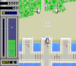 - 数画面先の敵基地に長距離射撃ができる斬新な戦車ゲーム。 画面左のレーダーで敵の基地を確認し、ボタンを押して照準を移動、離すとミサイル発射となる。敵要塞もミサイルで応戦。全4面で、4面のみ継続不可となる。キュア(基地)を破壊すると4種のアイテムが出現する。キュアや最終要塞ジャイログは、ミサイル以外では破壊できない。