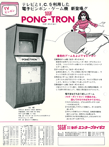 セガのビデオゲーム第1弾。 パドルを操作してボールを打ち合い、そらすとミスになる。相手の得点が自分のミスとなり、どちらかが11点(設定により15点)獲得するとゲーム終了。 ラケットの端でボールを当てると、より角度のついたボールを打ち返せる。1プレイ50円で遊ぶことができた。