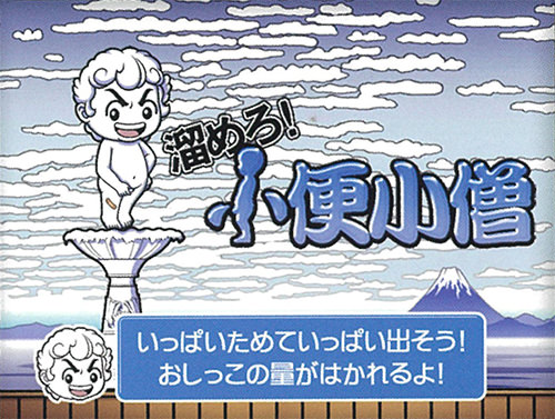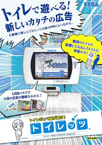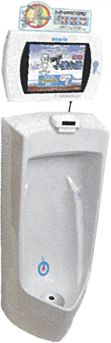 既存のトイレが、ゲームを楽しめるおもしろトイレに早変わり! 男性用小便器に取り付けたスピードセンサーがおしっこのスピードをキャッチし、おしっこの速度や量によってゲームが進行します。 ゲームセンターや飲食店などにて稼働。トイレだって遊び場だ!