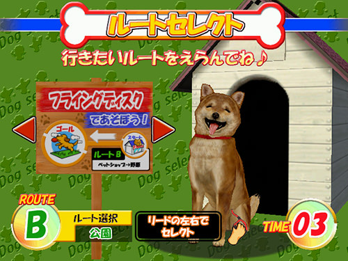 犬の散歩を体感するゲーム。 ラブラドールや柴犬など6犬種から好きな犬を選び、手網を握って犬といっしょに目的地を目指す。腐った食べ物やクルマを避けつつ、電柱にマーキングさせると犬のごきげんがアップ。ゲーム終了時に消費カロリーが表示される。