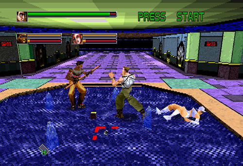 - 業界初のフルポリゴンアクションゲーム。 テロリストに占拠された超高層ビル“エターナルタワー”に乗り込み、ダイナマイト刑事ことブルーノ刑事とその相棒、シンディ刑事が大統領の娘を救出する。立体的なステージ、モーションキャプチャーによるリアルな動きなど、演出と視覚効果はポリゴンの特性が活かされている。 レバーとボタンの組み合わせで様々な技が出せ、ザコ敵を一撃で倒せる“逮捕”や完全無敵“のスピニングアタック”などの特殊攻撃も多彩。フィールドに落ちているアイテムの種類もじつに豊富だ。複数のアクションシーンとボス戦でステージは構成されるが、画面の指示どおりに素早く操作するビジュアルシーンも随所に盛り込まれていた。
