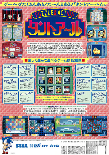 - たくさんのミニゲームが詰まったパズル&バラエティ。 バックボーンとなる世界観は『ボナンザブラザーズ』で、同作品の主人公ふたり組が脱走犯を追いかけるストーリー。4つのミニゲームからひとつを選んで挑戦をくり返し、設定されたノルマをこなせばステージクリアとなる。 ミニゲームはバラエティ豊かで、記憶力や反射神経が問われるもの、迷路ゲームやシューティングなどさまざま。テンポよく何度でも楽しめる独特のゲーム性が好評を博した。 タイトルの『タントアール』(たんとある)を始めとするダジャレ系のネーミングも特徴。ライフ制で全4ステージ。