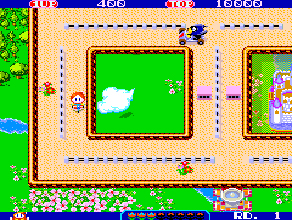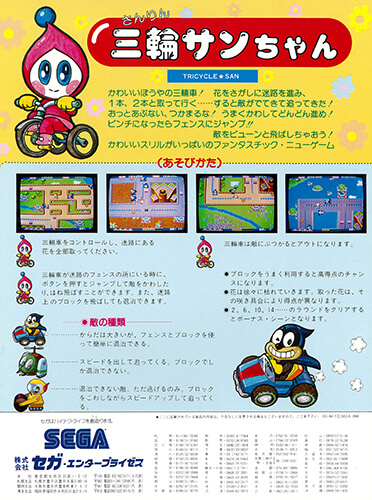 三輪車に乗ったサンちゃんを操作し、迷路の中の花を取っていくドットイートゲーム。 フェンスを使ってのジャンプで、敵をかわしたりはね飛ばしたりできる。フルーツを回収するボーナスステージがあり、全100面で終了。 花は徐々に枯れていくので、取った時の咲き具合によって得点が違う。