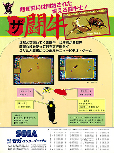 アーケード史上唯一の闘牛を題材としたアクション。 2ボタンで剣と赤い布を使い、牛に剣を刺していく。牛が布に触れた時に布ボタンを連打して翻弄すると高得点。肩のマークに剣を刺せば倒すことができる。4面ごとに、牛の突進をかわしながら闘牛士に迎え入れていくボーナスステージが存在する。