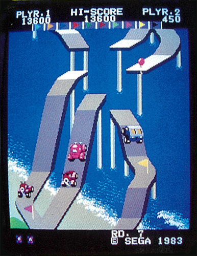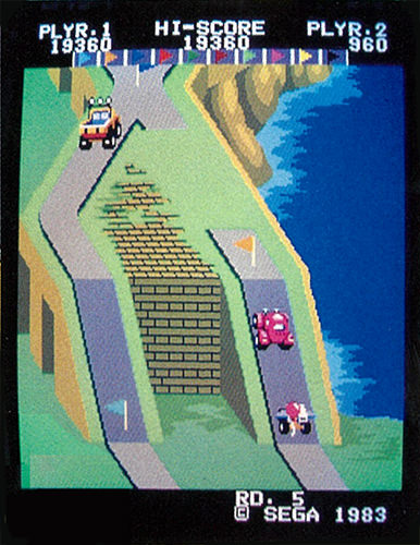 - X字状に交差した迷路の中、クルマを操作して10本のフラッグを集めていくアクション。 自車はジャンプが可能で、敵車をかわしたり押しつぶしたり、近道したりできる。地形に起伏があり、慣性がついているのが難しい。 坂道は勢いをつけないと登れない。アイス、帽子などのアイテムを取ると800点、ボーナスカーを押しつぶすと1000点の高得点となる。