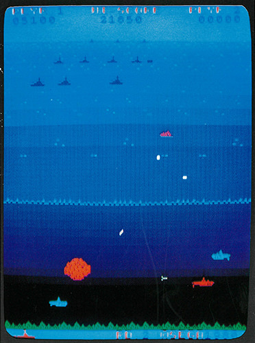 - 潜水艦を操作して敵戦艦を殲滅するシューティングゲーム。 画面は上部が海面、下部が海中に分かれている。海上には艦隊と駆逐艦、水雷艇が、海中には潜水艦が出現。時期の潜水艦は上(海上)と横(海中)へ向かって2方向に弾を3連射することが可能。12隻の艦隊および駆逐艦の攻撃をかわして全滅させるとラウンドクリア。規定得点で1機だけ潜水艦が増える。
