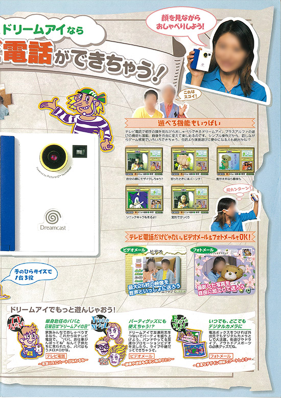 ドリームキャストに接続することでリアルタイムに相手の映像を見ながら会話が楽しめるビデオチャット(テレビ電話)ができる「インターネット デジタル ビデオ&カメラ」。