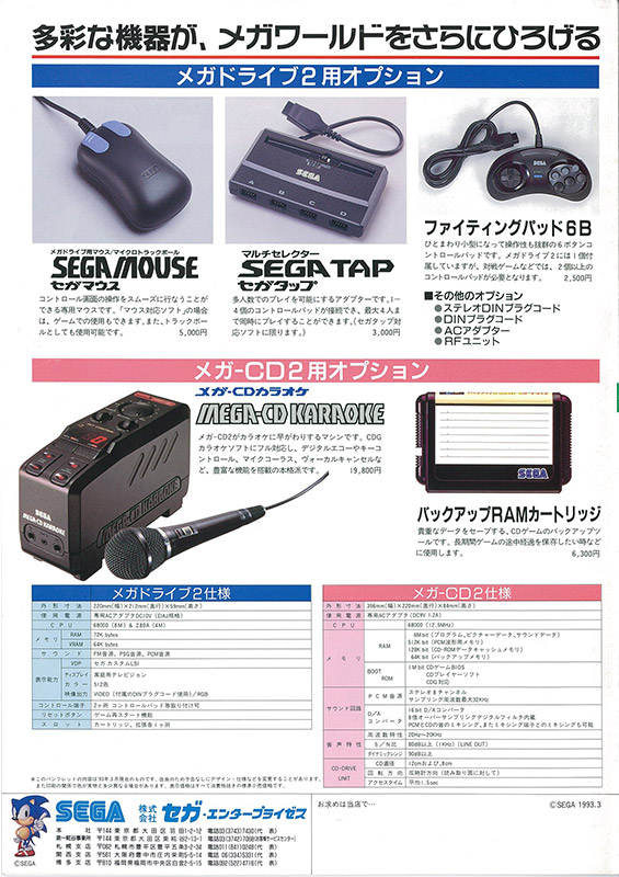 セガ以外のソフトメーカーも本格参入し、周辺・関連機器も数多く登場。メガCDと合体させることによりCD-ROMのソフトも遊ぶことが可能で、メガモデムでは電話回線を使ったゲームの配信や離れた人との対戦もできた。