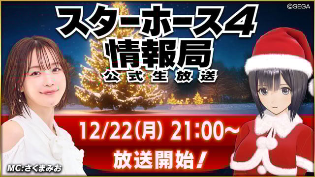 これから配信される番組 2025.12.22(月) プロジェクトセカイ カラフルステージ! feat. 初音ミク 放送時間:19:30 プロジェクトセカイ プロセカ放送局 #27 YouTube Live ニコニコ生放送 SEGA 放送時間:20:00 スペシャルゲストは田中パウロ淳一選手と大栗崇司社長!!『プロサッカークラブをつくろう!2026』公式番組「サカつくTV#3」栃木シティコラボSP! YouTube Live StarHorse4 -スターホース4- 放送時間:21:00 【StarHorse4】12月だよ!一足早くメリークリスマス!第68回スターホース4情報局! YouTube Live 2025.12.23(火) atlustube 放送時間:21:00 【公式】Persona X-stream Ver. 2.7 |半周年記念放送! YouTube Live PhantasystarCh 放送時間:21:00 『NGS ヘッドライン WAVE』(25/12/23) YouTube Live ニコニコ生放送 2025.12.25(木) ソニック・ザ・ヘッジホッグ【公式】 放送時間:19:30 【ソニステ!】クリスマスにれじぇくんとゲームやろうぜ!(2025.12.25放送回)【ソニック】 YouTube Live 2026.01.17(土) 頭文字D THE ARCADE 公式チャンネル 放送時間:14:00 【頭文字DAC】公式全国大会 公道最強決定戦3rd 九州大会 生配信!【頭文字D THE ARCADE】 YouTube Live アーカイブ(配信された番組) 2025.12.16(火) 英傑大戦 公式チャンネル 放送時間:19:00 「英傑大戦』公式生放送」 2025年12月 ~冬のバージョンアップ特集~ YouTube Live SEGA 放送時間:20:00 D2メガテン公式 臨時生放送 ~8周年スタートダッシュブロードキャスト~ YouTube Live 2025.12.14(日) 頭文字D THE ARCADE 公式チャンネル 放送時間:14:00 【頭文字DAC】公式全国大会 公道最強決定戦3rd 東海大会 生配信!【頭文字D THE ARCADE】 YouTube Live 2025.12.13(土) 龍が如くスタジオ 公式 放送時間:18:00 『龍が如く』20周年記念特大放送 YouTube Live ニコニコ生放送 アーカイブをもっと見る 公式チャンネル