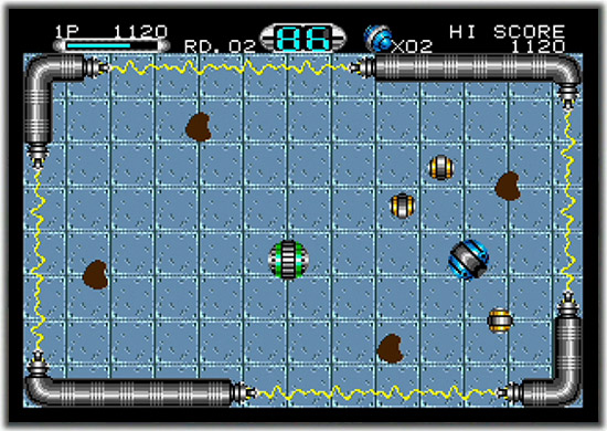 1画面内で展開する体当たりアクション。すべての敵を画面外に弾き飛ばせ! 対戦もできます。