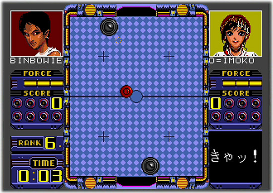 個性的なキャラを相手にエアホッケーを勝ち抜け! 対戦もできます。