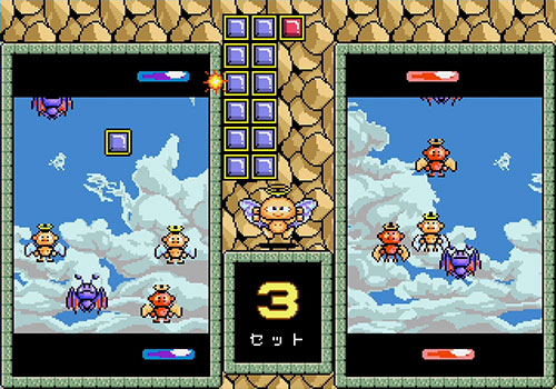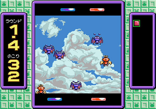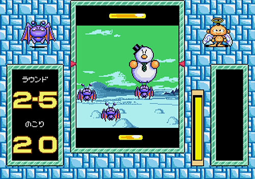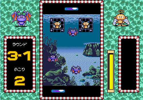 1992年に開発されながら、日の目を見なかった、幻のアクションです。女神の力でパドルの姿となった太郎と花子は、悪魔の「でび」を避けながら、天使の「ぴー」を救出します。2人協力&対戦プレイ、どちらでもお楽しみいただけます。
