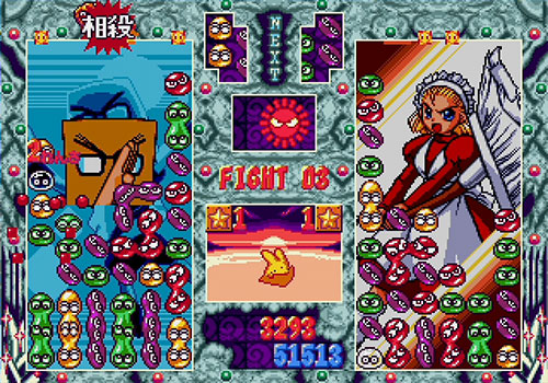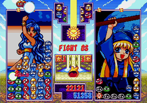 人気アクションパズルのシリーズ第3作を、2P対戦「ふたりでぷよぷよ」だけを抜き出してメガドライブに移植。新要素の「太陽ぷよ」を上手に使って、大逆転を狙いましょう。本作ならではの、連鎖中のカットイン演出なども再現されています。