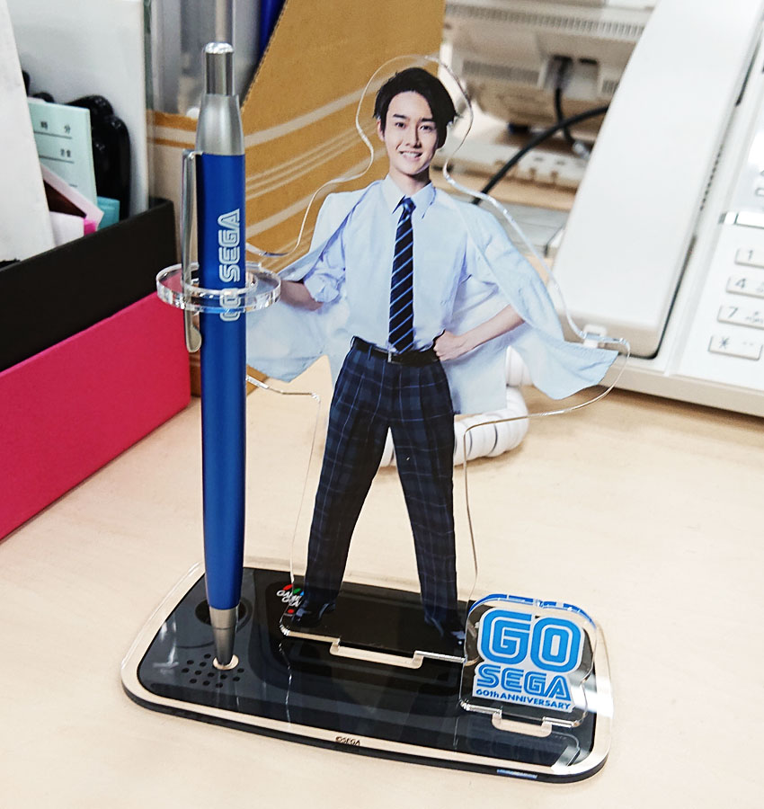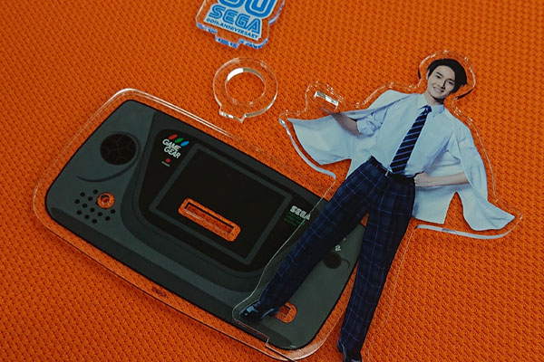 台座はゲームギアで、発売中の「せがた三四郎」アクリルスタンドと並べて使えるデザインになっています。