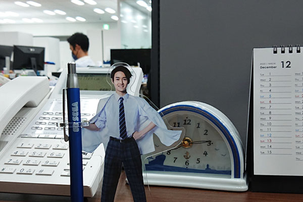 「せが四郎」のアクリルペンスタンドができました。「せが四郎」の右手にあるフックにボールペンを立て掛けて使えます。