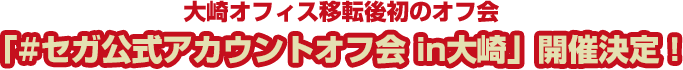 大崎オフィスに移転して10ヶ月。Twitterで話題となったセガ公式Twitterアカウント30万フォロワー記念オフ会からも1年が過ぎました。「またセガ公式アカウントのオフ会を開催して欲しい…」「前回はタイムラインを見るだけだったので、次回こそはリアルで参加したい!」と多数のお声をいただき、今回セガグループ本社が大崎に移転して初めてのファンミーティング「#セガ公式アカウントオフ会 in大崎」を開催します!