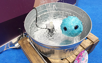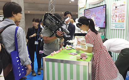 ブースの一角には、ひときわお客様が集まっているコーナーが。こちらは7月26日発売予定『しゅわボム』シリーズのコーナーです。