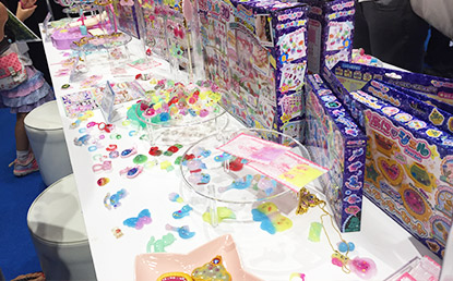 大人気の『ぷにジェル』シリーズにはビーズアクセサリーが作れるキット『ぷにジェル ゆめぷにビーズアーティスト』が仲間入り! キラキラしたコーナーにうっとりです。