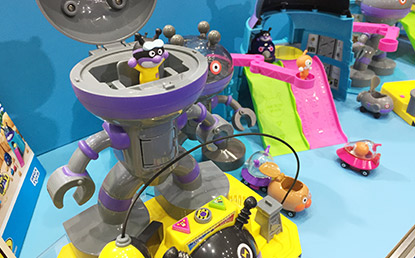 AM10:15、雨上がりの国際展示場正門駅に降り立ち東京ビックサイトに向かうと、「おもちゃショー」というメルヘンな名前には似つかわしくないスーツのおじさまたちが続々とお越しになっていました。そう。今日7日は商談見本市(バイヤーズデー)。かわいいお子様たちが集まる一般公開(パブリックデー)とは違い、ちょっと堅めな雰囲気です。
