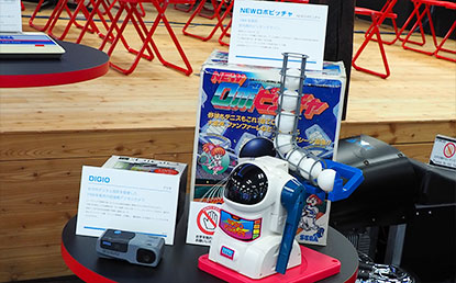 また会場には、歴代のセガハードが大集結! 普段、Twitterのネタなどでも使われているかつてのハードが実際に展示されていた。ついでに、自宅で野球が楽しめるピッチングマシン「Newロボピッチャ」と、なぜかセガから発売された伝説のデジタルカメラ「DIGIO(1996年製)」も。これはレア。