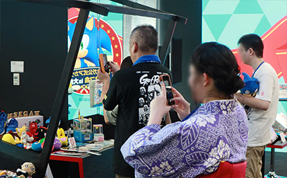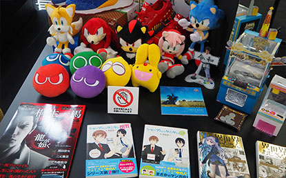 加えて、『ソニック・ザ・ヘッジホッグ』『ぷよぷよ』『龍が如く』などのセガ公式グッズの展示コーナーや、セガプライズの『名探偵コナン』グッズ展示コーナー、『サクラ大戦』のオンラインくじ展示コーナー、スマホ向けコンテンツの展示コーナー、アトラスのグッズ展示コーナー、ダーツライブの『ニンジャトレーナー』コーナーなどが設置されていた。まさに、セガグループ大集結といった雰囲気だ。