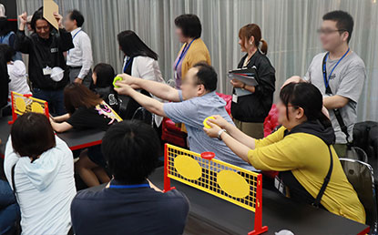 この『ケツミントン』、誰でもすぐに出来る、ルールがわかりやすい、技術の差がないのでガチ対決しやすい、と前回のオフ会でも、アイスブレイクの鉄板アイテムとして大活躍。初対面の参加者全員がのめり込み、我々スタッフをも巻き込んで一気に笑顔になった『ケツミントン』は今回もそのパワーを遺憾なく発揮し、参加者同士の心の壁を打ち破ってくれることであろう。