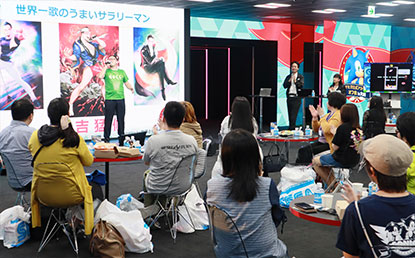 事前に参加者のみなさんからいただいた質問に答える形式で、抽選箱から取り出した質問に8人のスタッフがそれぞれ答えていくことに。「セガ公式アカウントの中の人はフォロワーのことを覚えていますか?」「好きなゲームはなんですか?」などなどTwitterアカウントを運営するうえでの本音トークから、セガで働いていることに対する質問、なかなか聞けないマニアックな質問などが飛び出して、運営が予想していたよりずっと真面目なトークステージになってしまった。参加者のみなさんはひとつひとつの丁寧な本音での回答に、ときには深くうなずき、ときにはバーチャ10段のツワモノに驚嘆の反応を見せたり、予想外の回答に大爆笑をしたりで楽しいコーナーとなった。