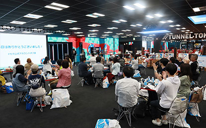 最後の挨拶はもちろんこの人! ということで、セガ公式アカウントの中の人(本体)がマイクを握り、一日の感想とお礼の言葉を述べた。トークコーナーにも登場したが、中の人(本体)が人前に出てくる機会はほぼなく、直で会って、話を聴けるのもかなり稀有。それもあって、休憩時間にはお話し待ちの列ができるほどの人気で、締めの挨拶でもみなさん静かに一言一言に聞き入っていた。