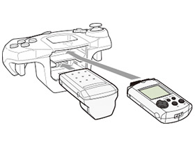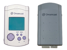 セガサターンのマルチコントローラーを踏襲したようなデザインに、拡張スロットが実装されており、液晶表示付メモリカード「ビジュアルメモリ」、振動パック「ぷるぷるぱっく」などが装着できました。