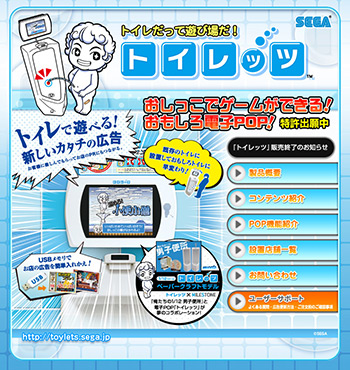 トイレッツは「トイレで遊べる!新しいカタチの広告」というキャッチコピーで発売された小便器に取り付ける電子POPです。