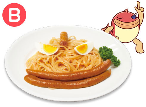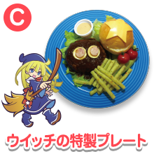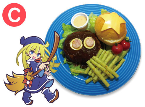 ウイッチの特製ソースをサウザンドレッシングで表現、ぷよぷよハンバーグはデミグラスソース仕立て、★型チーズをのせたパンズで挟んで食べてもよし。